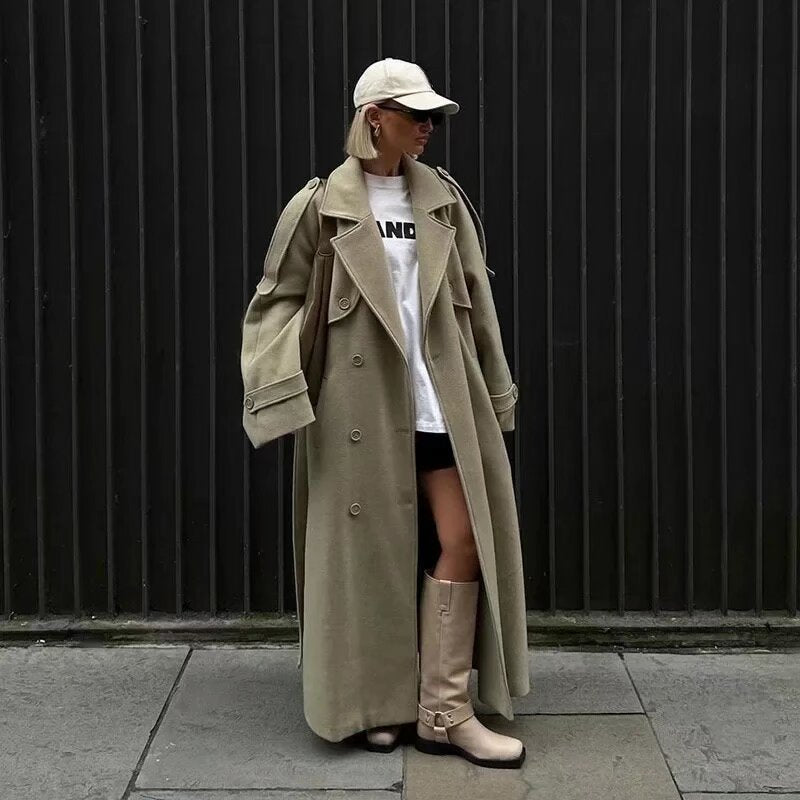 Dame OverSize Uldfrakke med moderne snit og praktiske lommer Stilla